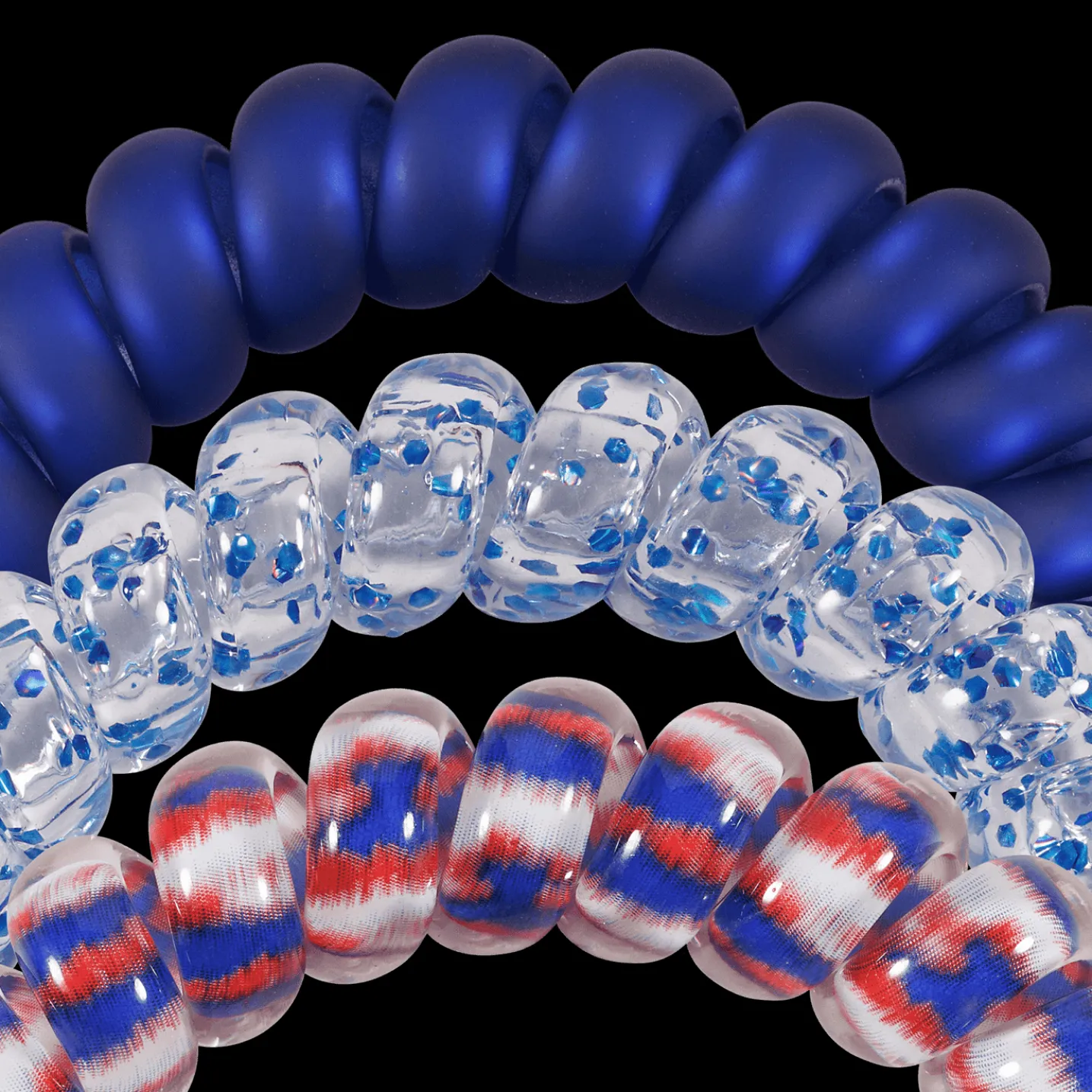 Hold your hair in place with ease and style! Fire-workin’ it Large Hair Ties in red, white and blueoffer a strong grip without damage, doubling as a stylish bracelet when not in use. Your new favorite hair essentials all year round.