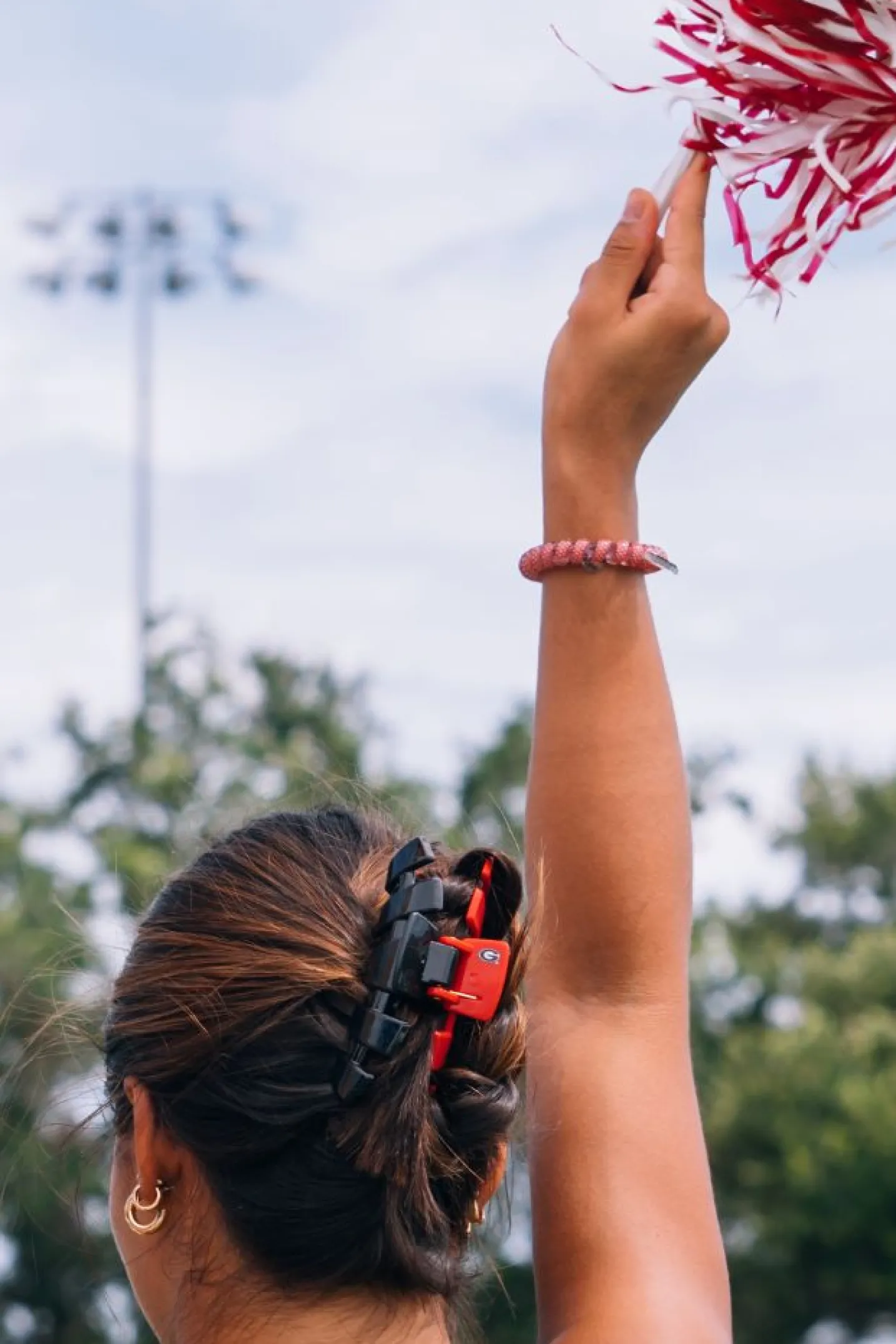 Say goodbye to breakable hair clips! We have perfected the hair tie and now have re-invented the clip. Meet the University of Georgia Large Claw Hair Clip in Black Red, crafted to elevate any hairstyle with the ideal blend of style and function.