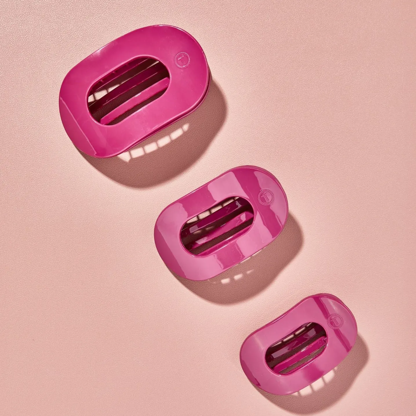 Lay flat and relax with the new TELETIES Wild Side Large Flat RoundHair Clipin Deep Magenta. This hair clip is designed to allow you to lay back flat, do yoga, or sit comfortably in a seat with a headrest, and it is made with the same material that is nearly unbreakable.
