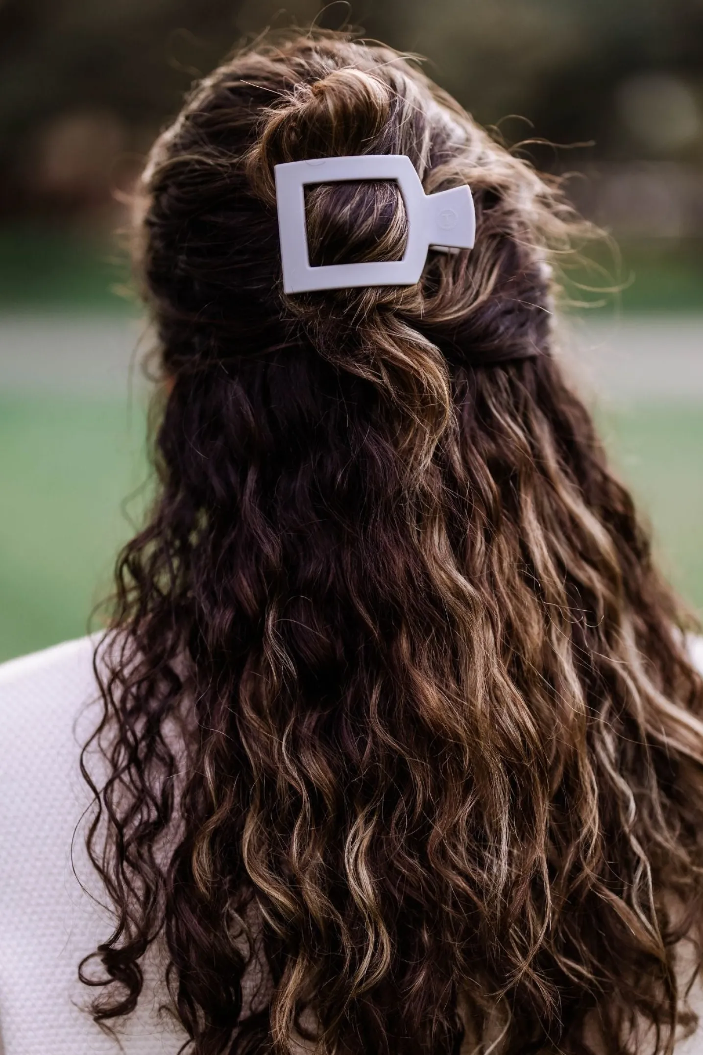 Lay flat and relax with the new TELETIES Silver Flames Small Flat Square Hair Clip in Gray. This hair clip is designed to allow you to lay back flat, do yoga, or sit comfortably in a seat with a headrest, and it is made with the same material that is nearly unbreakable.