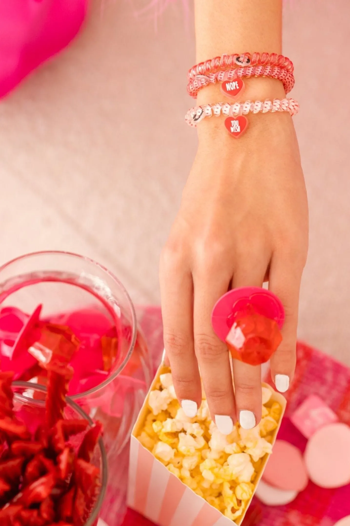 Swipe Left Small Hair Ties in Pink Red offer a strong grip without damage, doubling as a chic wrist accessory when not in use. Your new favorite hair essentials all year round.